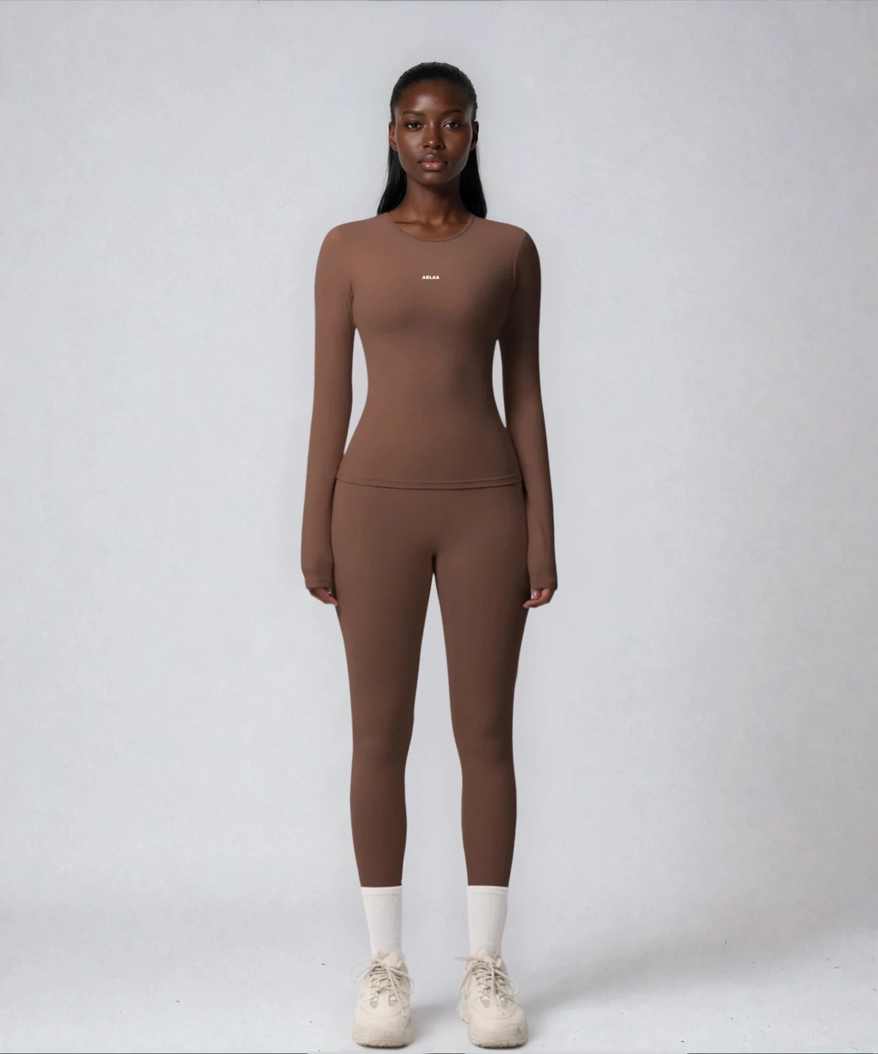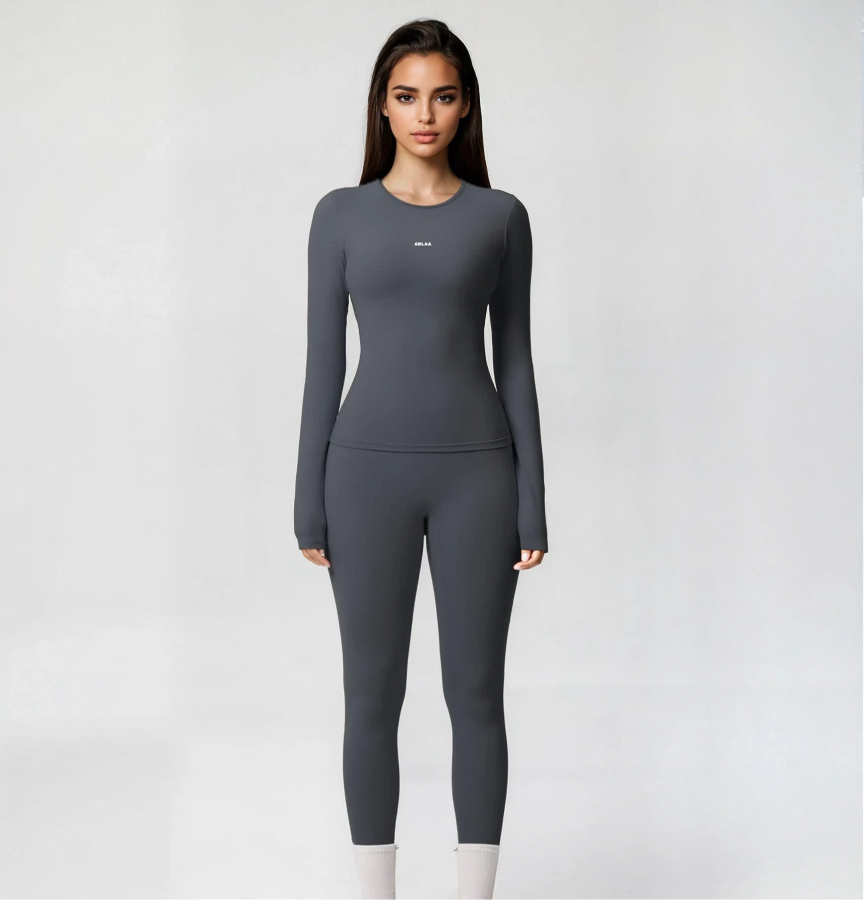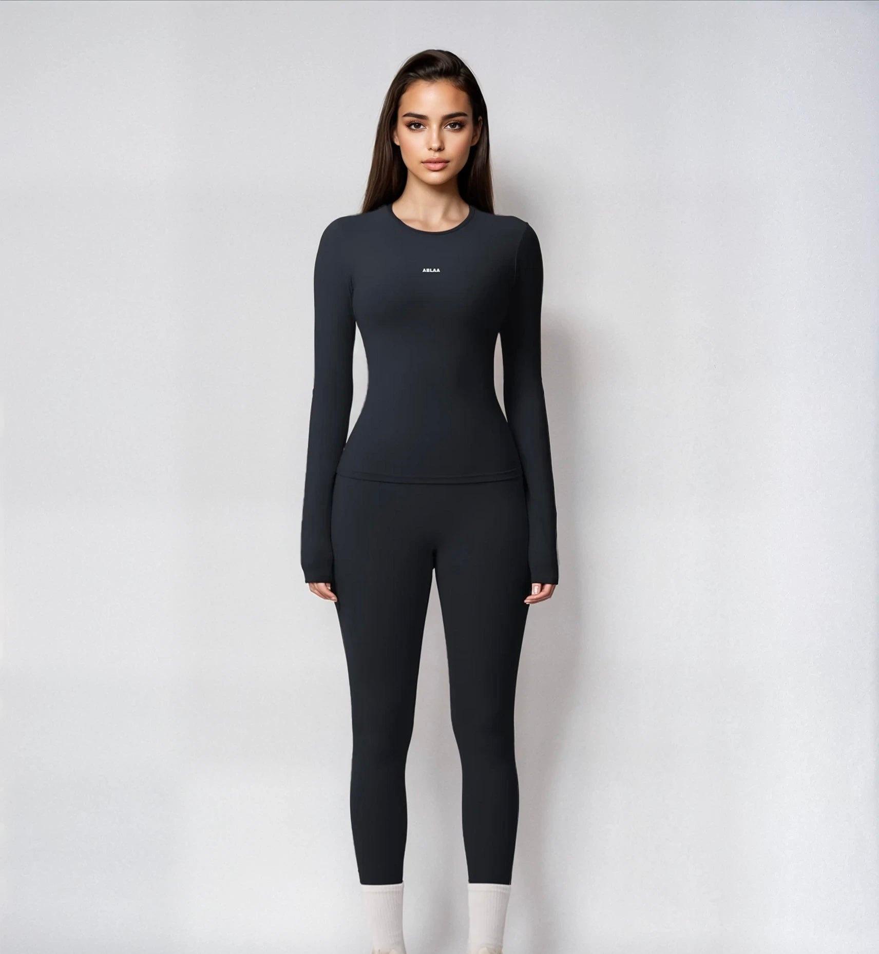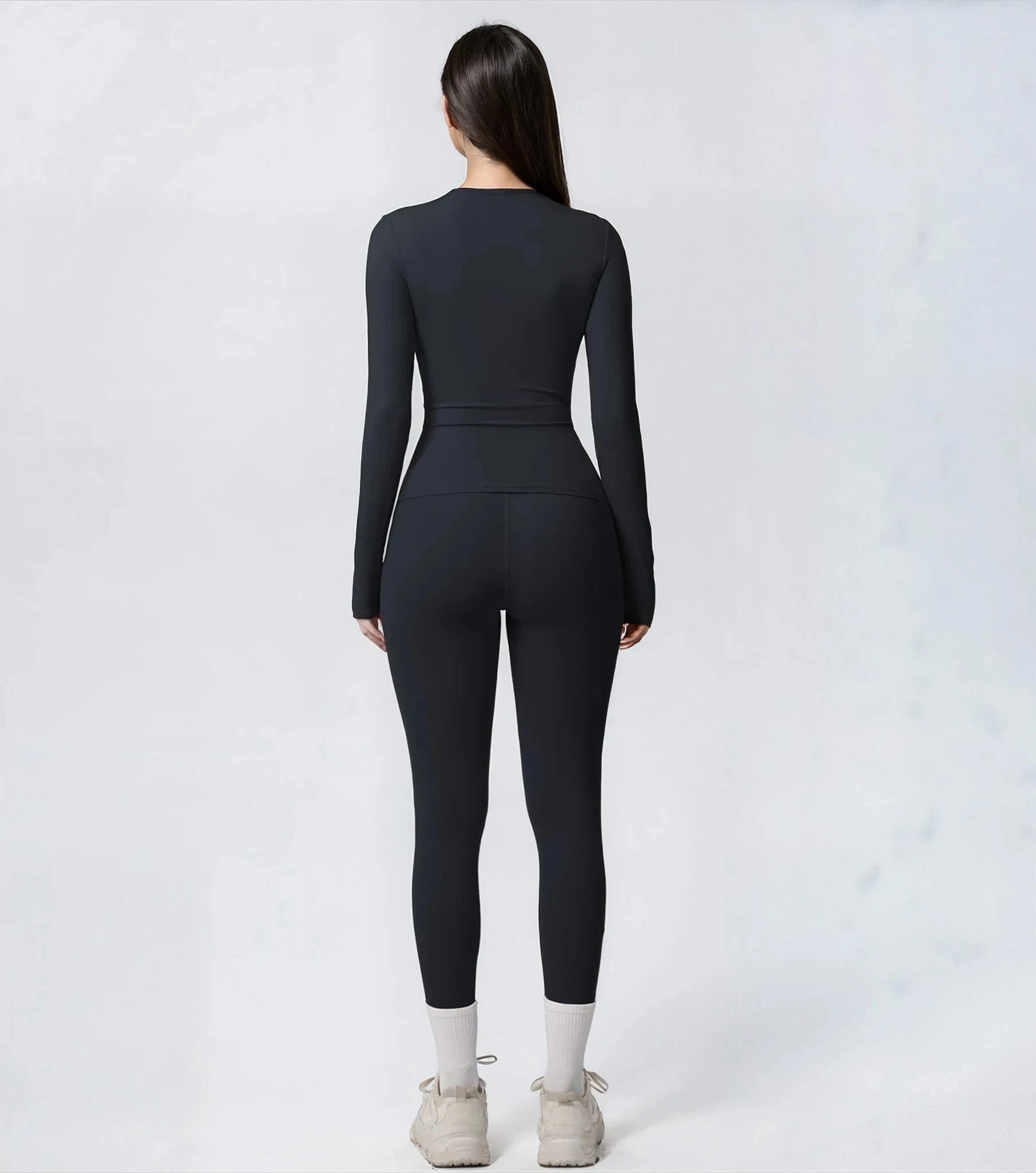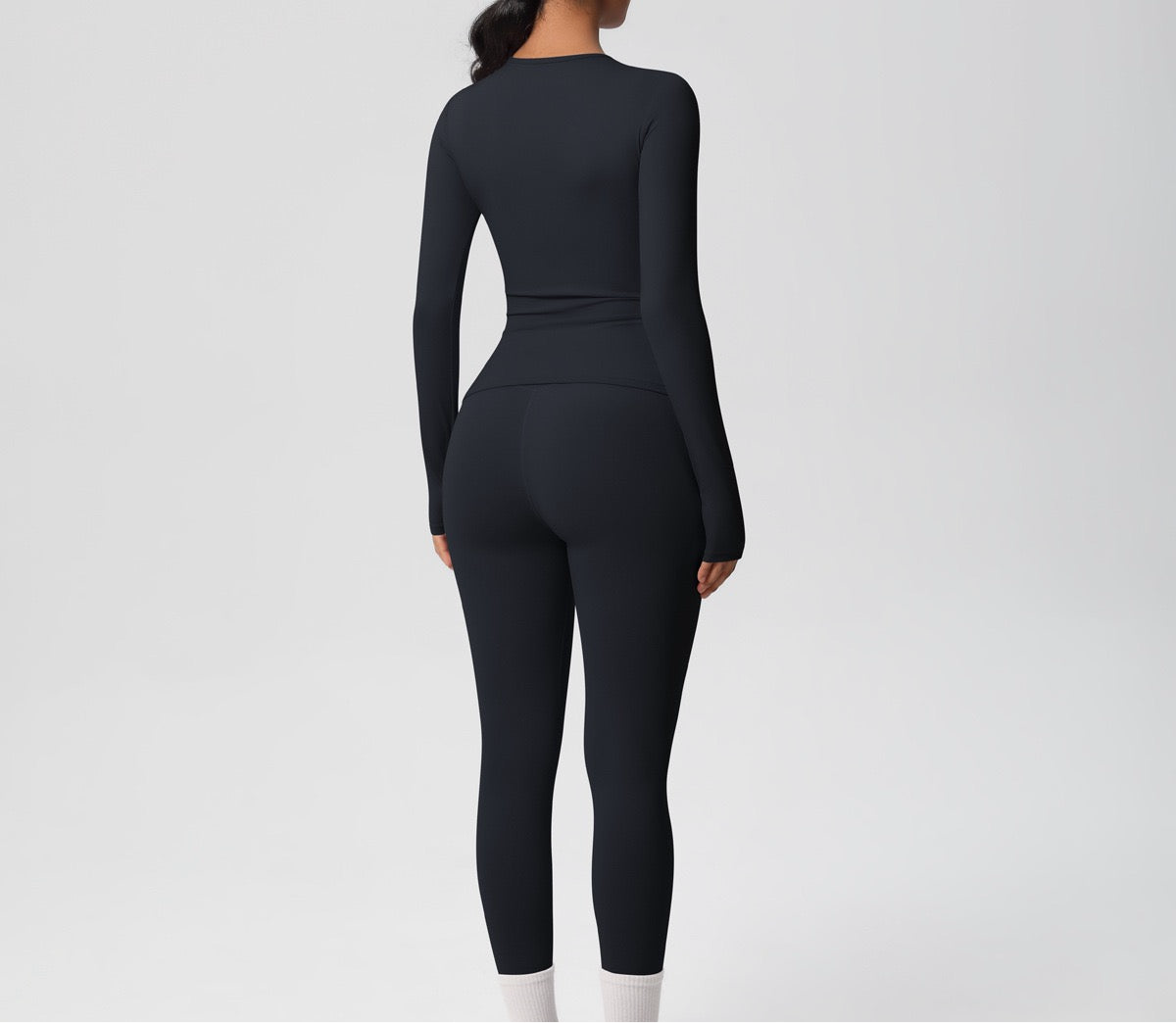J'adore cet ensemble ! Le noir est très élégant et la matière est vraiment douce. Idéal pour le pilates et même pour sortir. Le haut long couvre parfaitement et le pantalon fluide est très confortable.