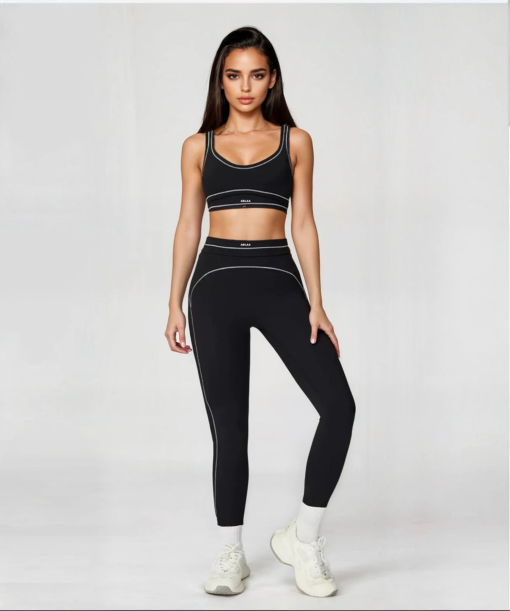 J'adore cet ensemble ! Le noir est très élégant et la matière est vraiment douce. Idéal pour le pilates et même pour sortir. Le haut long couvre parfaitement et le pantalon fluide est très confortable.